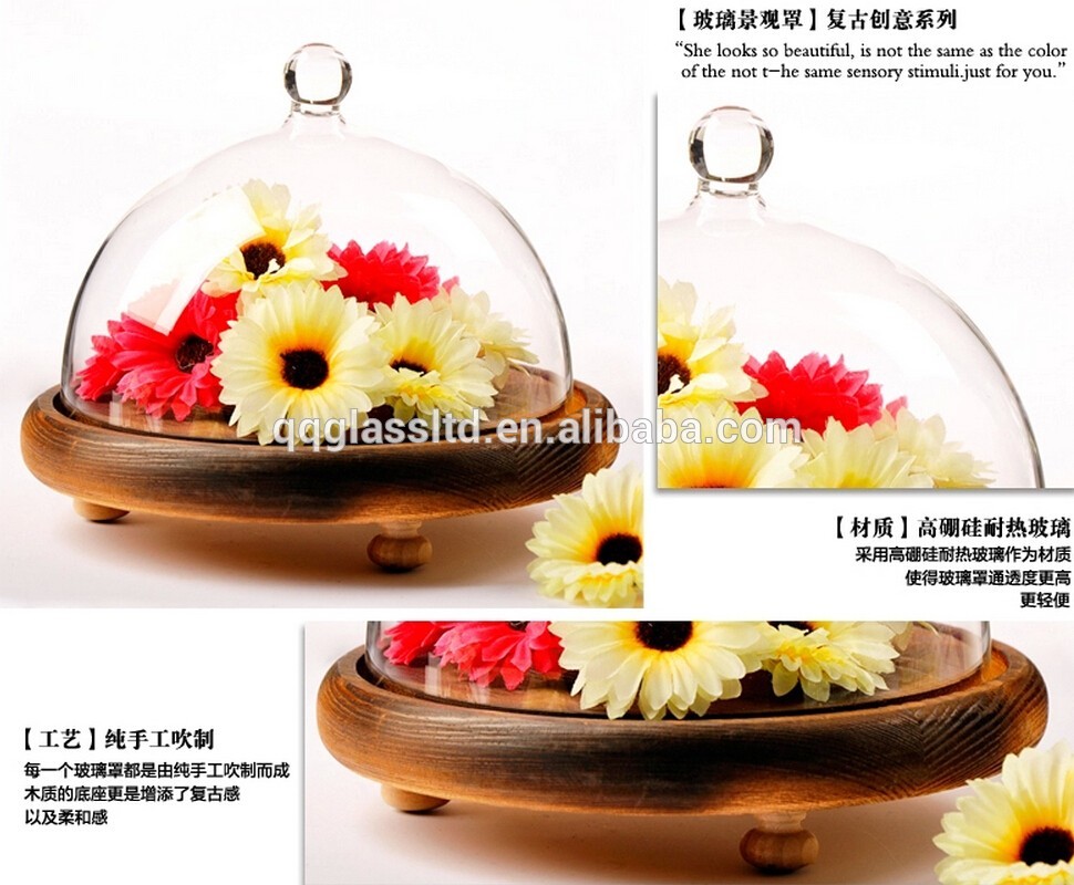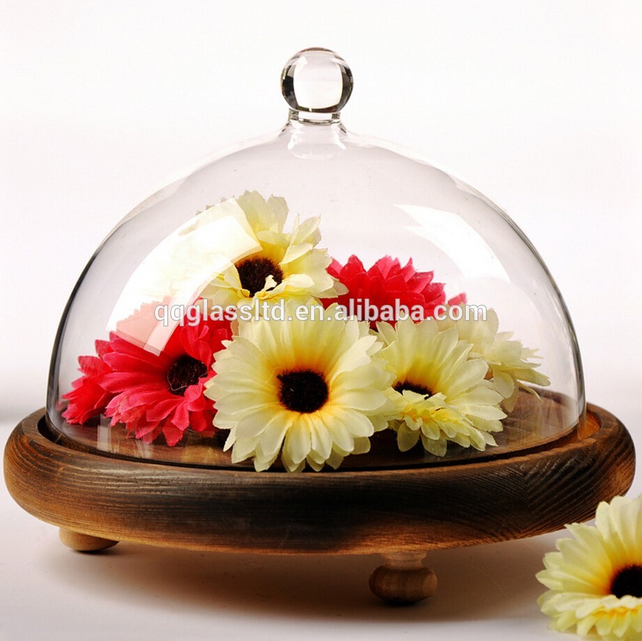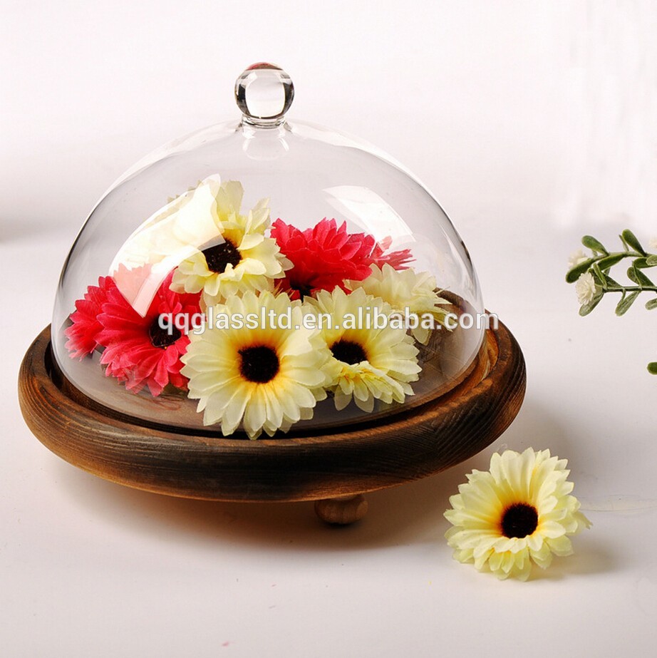 ຜະລິດໃນປະເທດຈີນລາຄາຂາຍສົ່ງຕົກແຕ່ງແກ້ວ Dome ກັບພື້ນຖານໄມ້